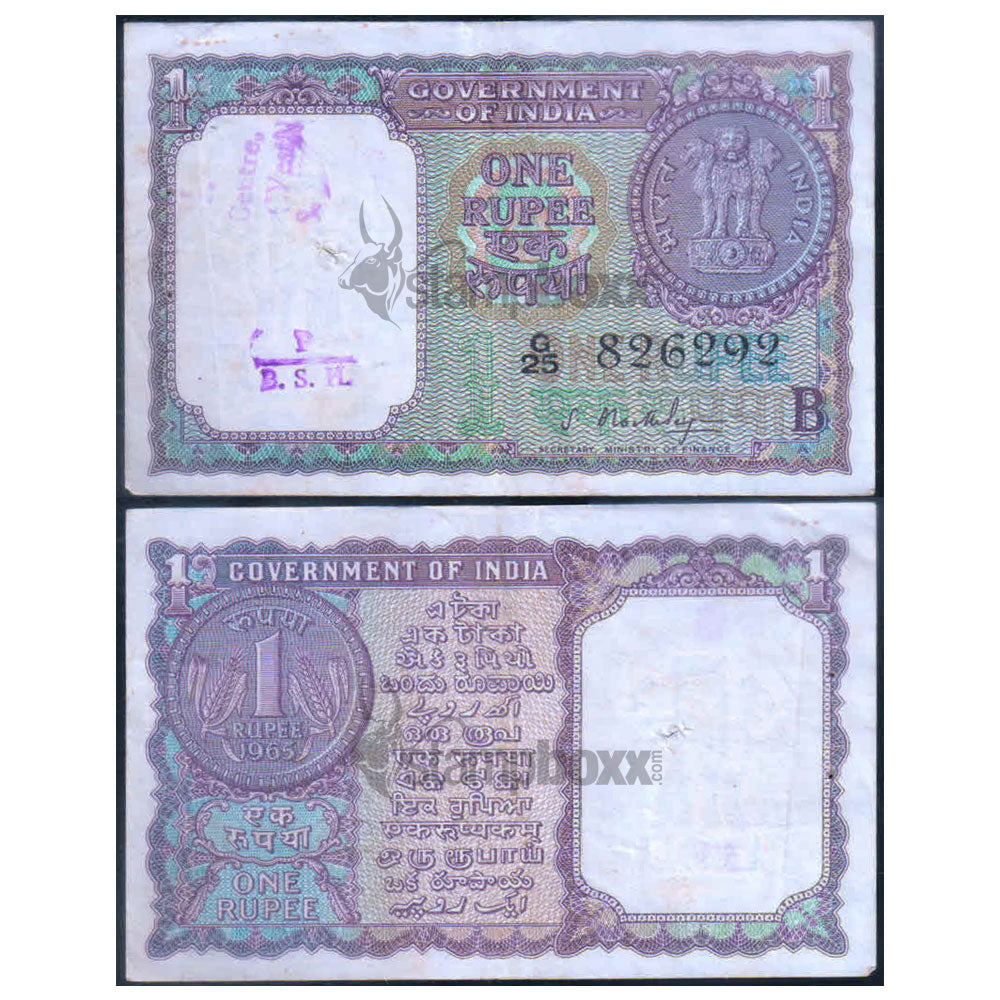 INDIA 1 RUPEE 1965 P-76c USED SERIAL 6292