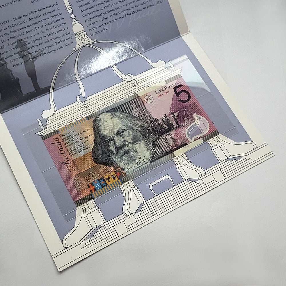 AUSTRALIA 5 DOLLARS 2001 P-56b UNC FOLDER - RARE
