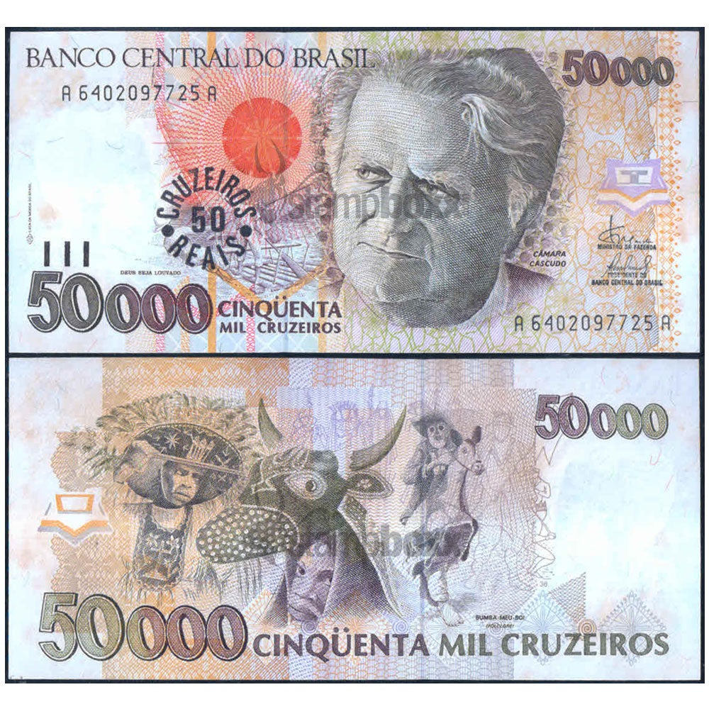 BRAZIL 50000 CRUZEIROS 1991-93 P-238 XF++ (STAIN)