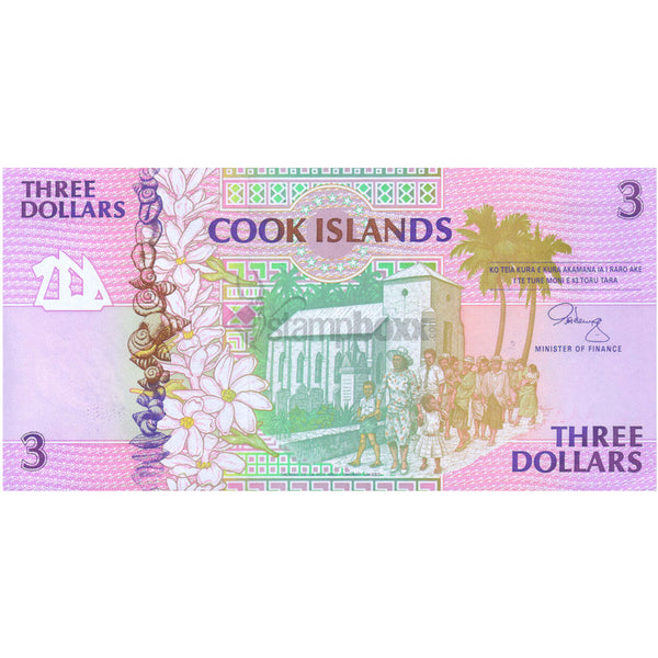 COOK ISLANDS 3 DOLLARS 1992 P-7 UNC