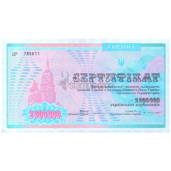 UKRAINE 2000000 KARBOVANTSIV 1992 P-91B UNC