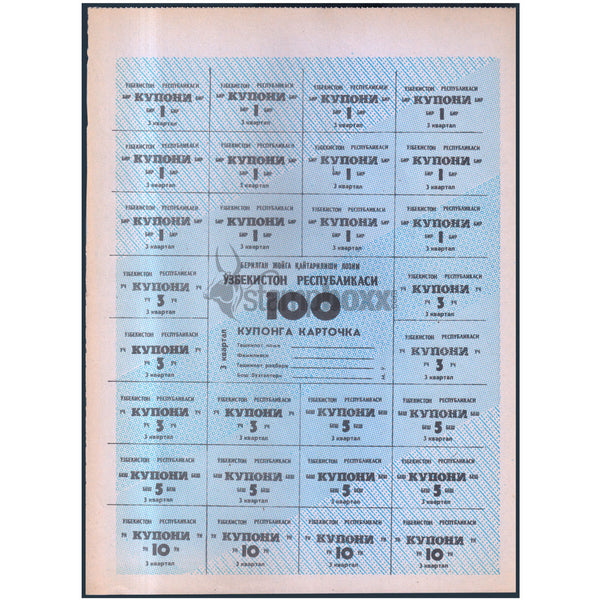 UZBEKISTAN 100 COUPONS 1992 P-49a UNC UNIFACE