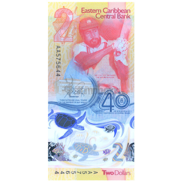 EAST CARRIBEAN STATES 2 DOLLARS 2023 P-61 UNC POLYMER - AA PREFIX