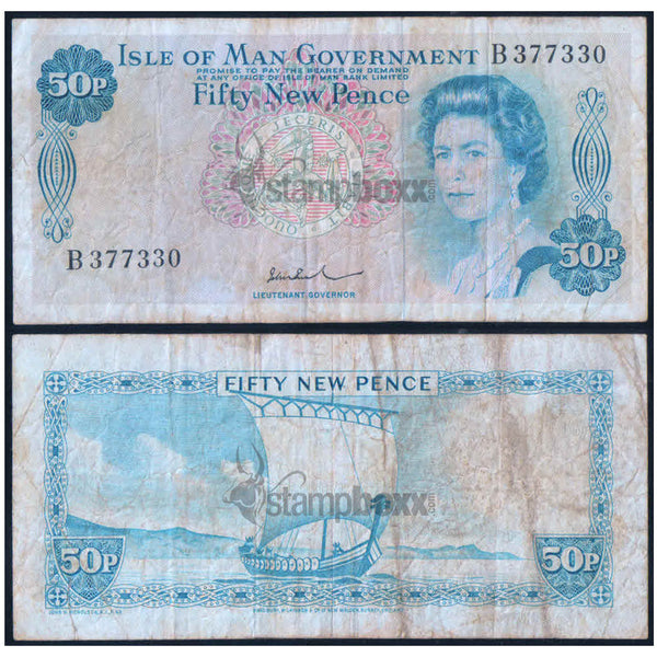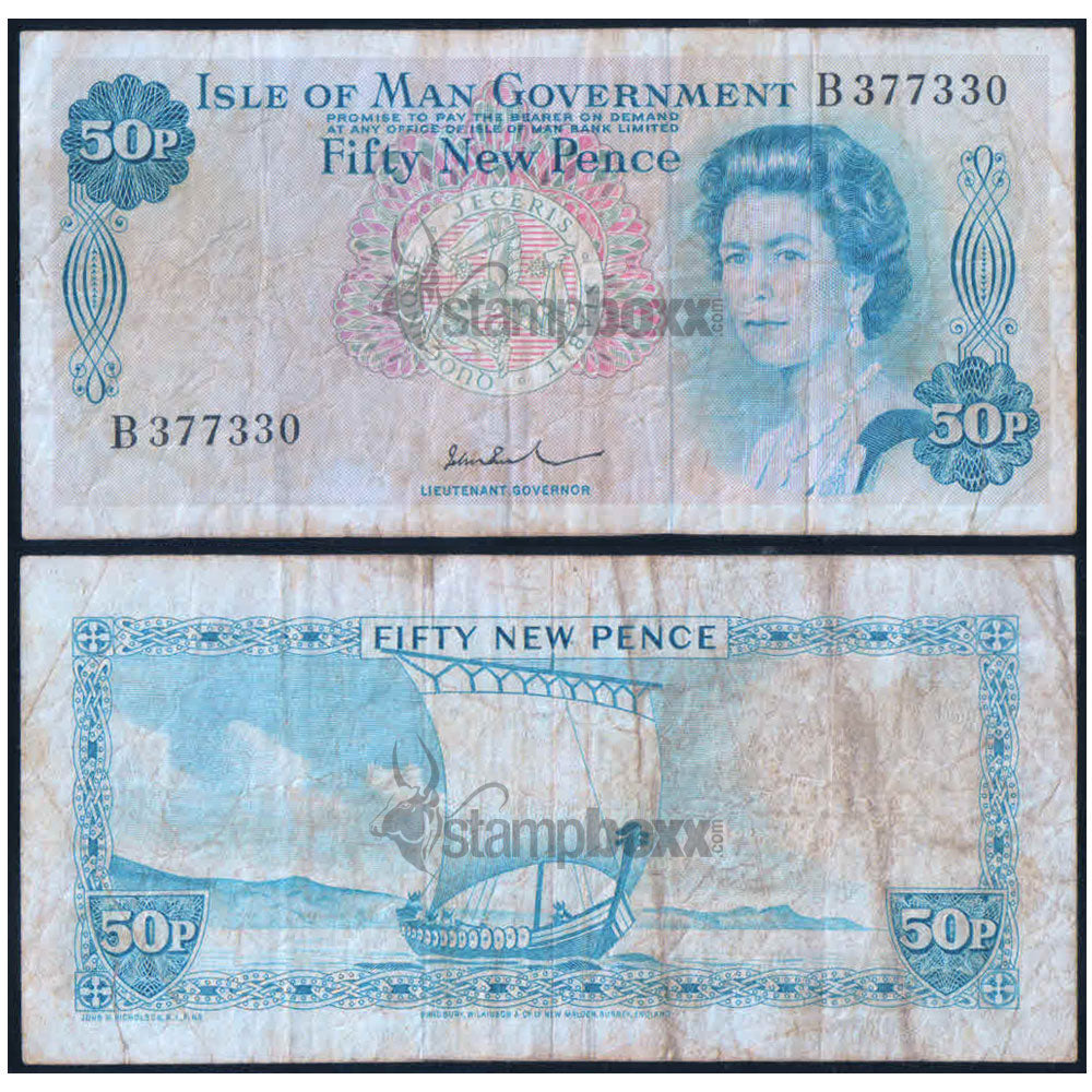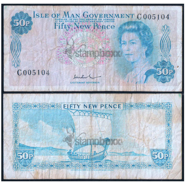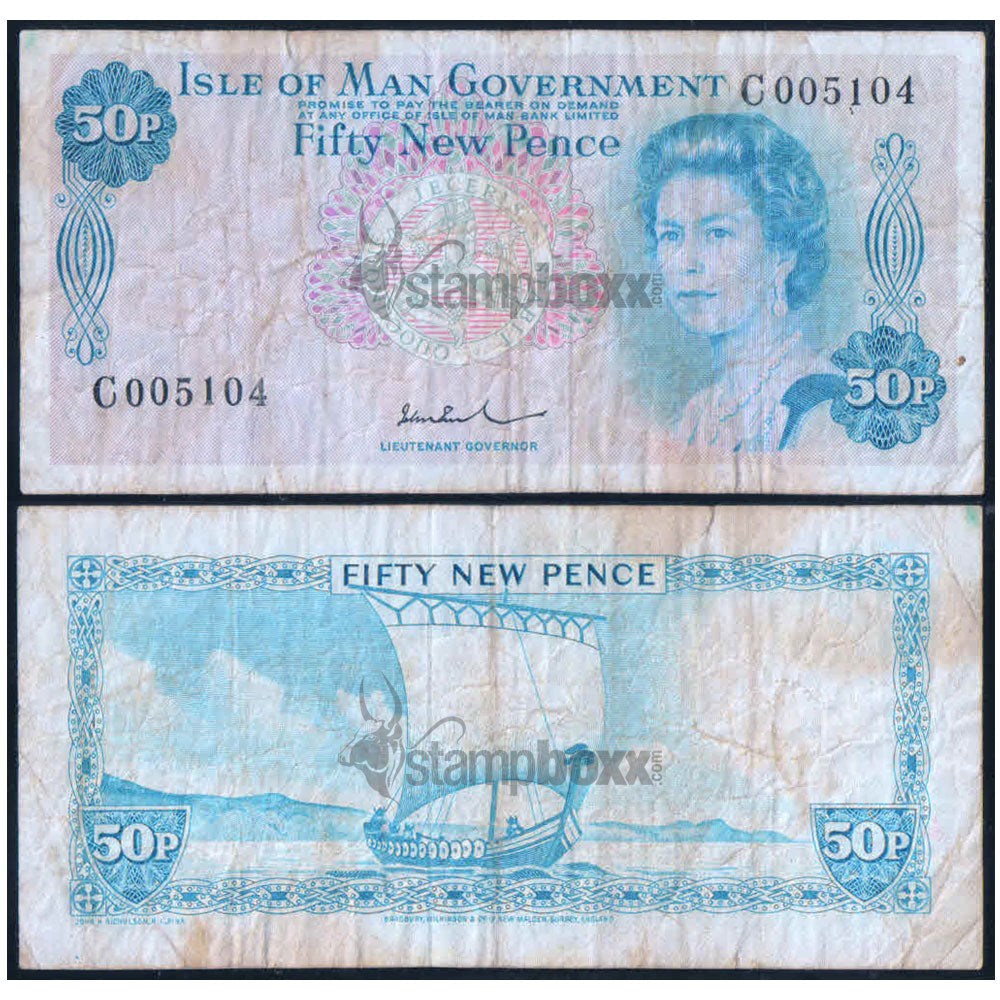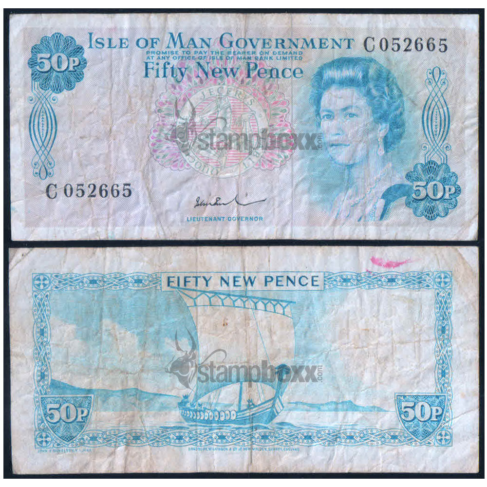 ISLE OF MAN 50 PENCE 1979 P-28c USED GRADE