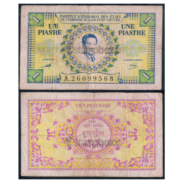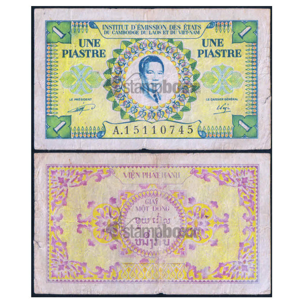 FRENCH INDOCHINA - VIETNAM 1 PIASTRE 1953 P-104 USED - RARE