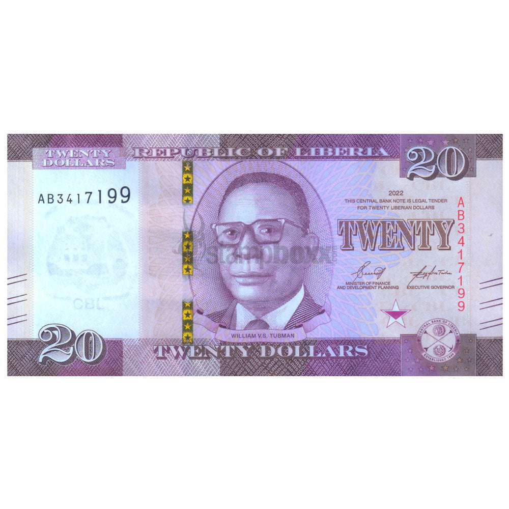 LIBERIA 20 DOLLARS 2022 P-W39 UNC