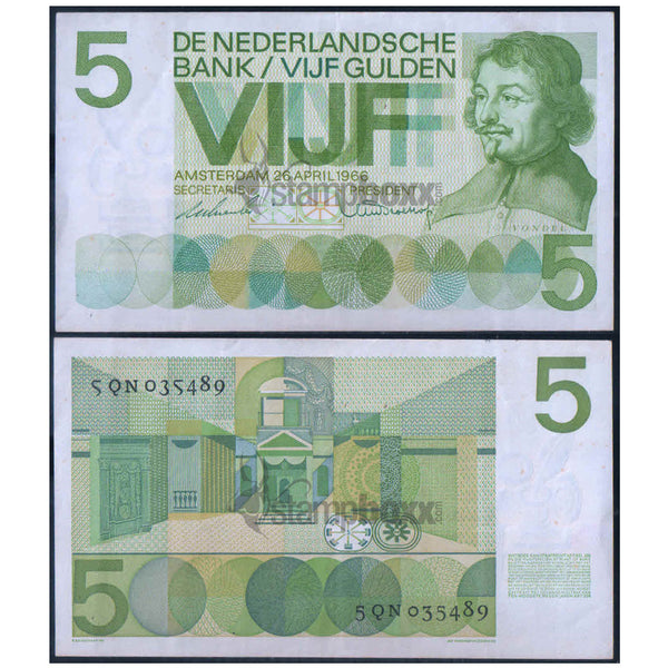 NETHERLANDS 5 GULDEN 1966 P-90 USED GRADE