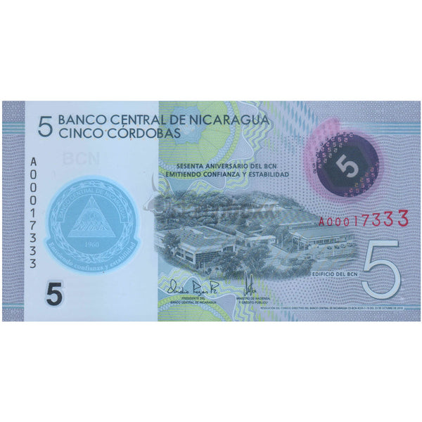 NICARAGUA 5 CORDOBAS 2020 P-219 UNC POLYMER