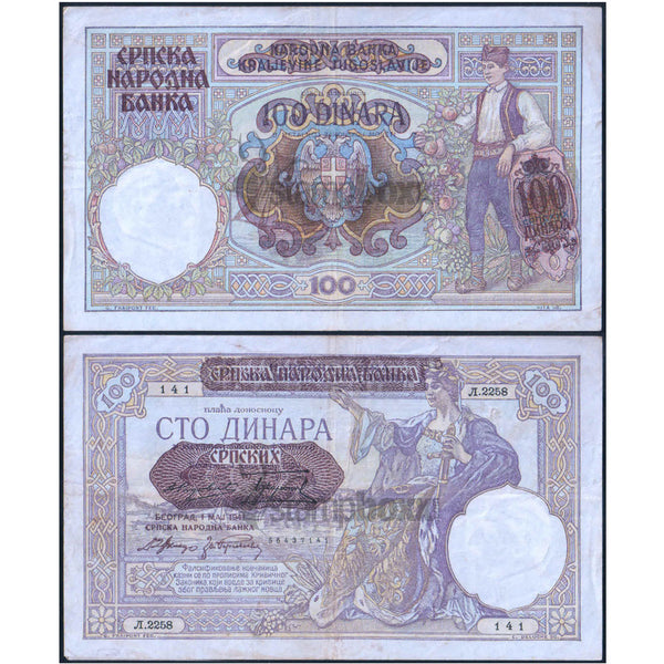 SERBIA 100 SRPSKIH DINARA 1941 P-23 USED