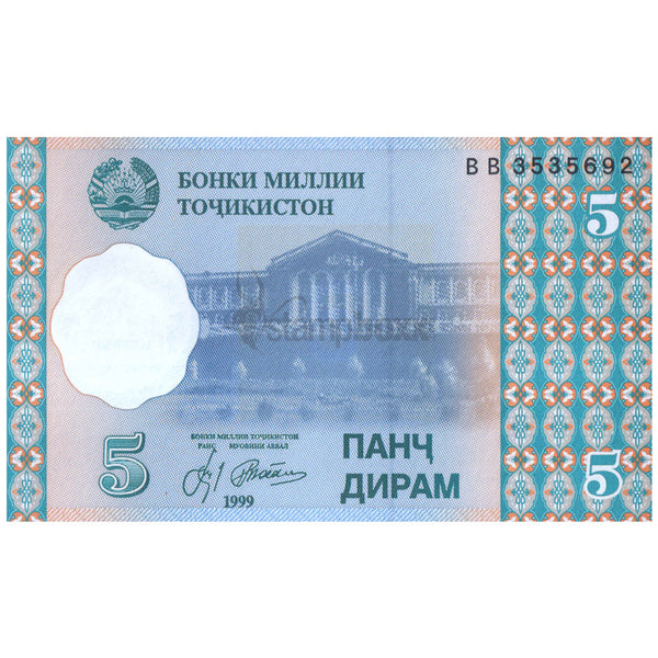 TAJIKISTAN 5 DIRAM 1999 P-11 UNC