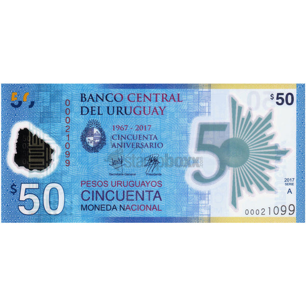 URUGUAY 50 PESOS 2017 P-100 UNC POLYMER