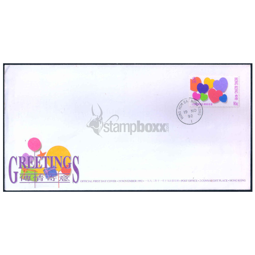 HONG KONG GREETINGS 1992 v1 FDC