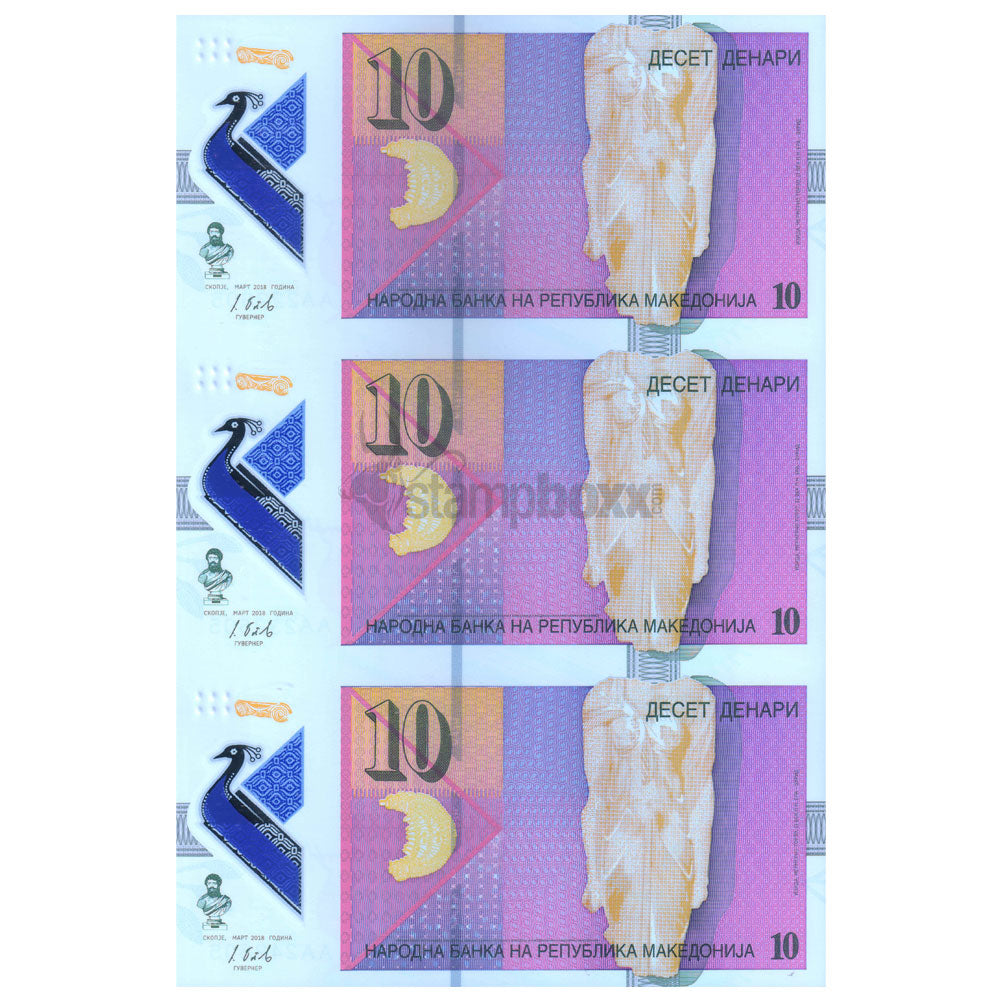 NORTH MACEDONIA 10 DENARI 2018 P-25 UNC UNCUT OF 3