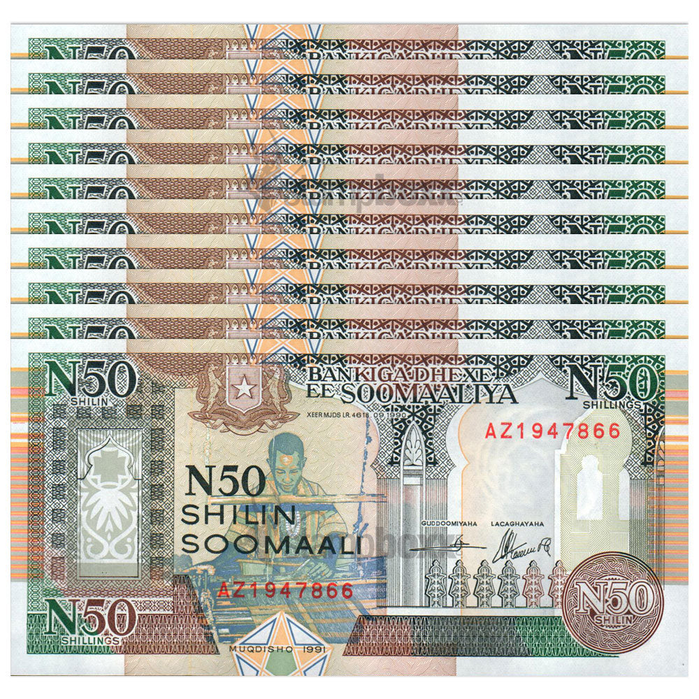SOMALIA 50 NEW SOMALI SHILLINGS 1991 P-R2 UNC x10Pcs